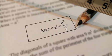 Area geo mathematical terminology presented on book text highlighted pattern on educational background.