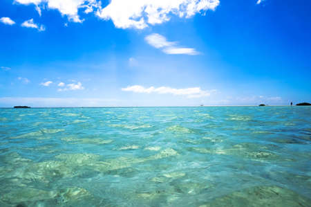 Tropical ocean with blue sky and vibrant ocean colors with coral