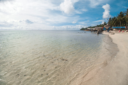 Beautiful tropical beach with blue sky and white cloud. Nature background