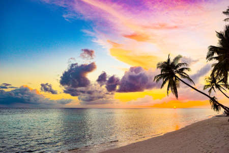 Beautiful evening sunset on the coast of the island. Maldives Islands.