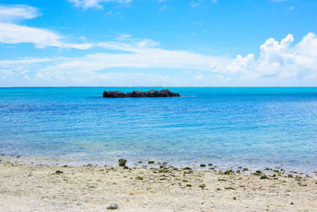 Tropical beach with rocks and turquoise water in Okinawa