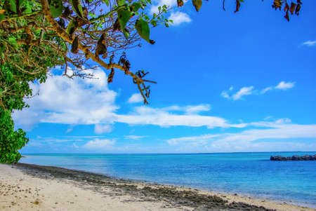 COOK ISLAND, SOUTH PACIFIC - SEPTEMBER 30, 2018: View of the sandy beach. Copy space for text