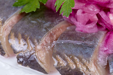 Baltic herring, appetizer and sliced close-up