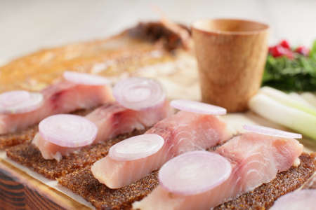 Seafood - salty fish herring ready to eat.