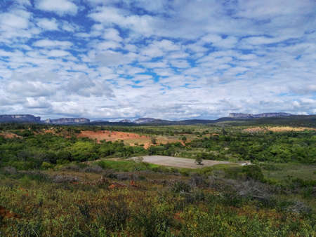 View of sandy track with chapada mountains in the background