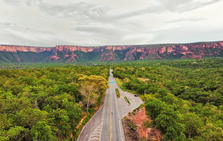 Fascinating road leading to the rocky formation of chapada dos guimarães with a dense forest