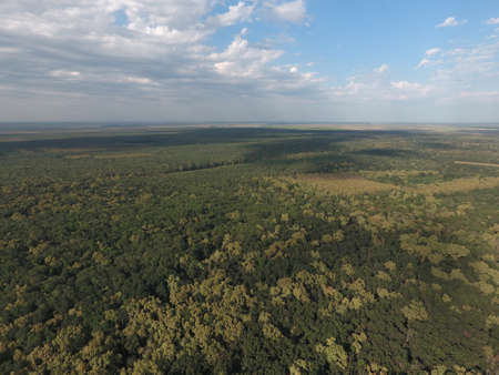 Long straight road in Murchinson National Park (Uganda), sunny day in June