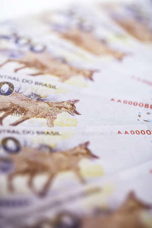 Money, Brazil, Money, Real, Reais. Real currency, money from Brazil. Brazilian banknotes in close up.