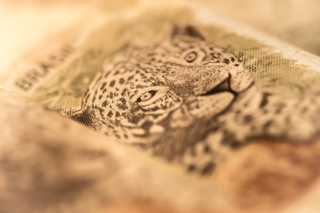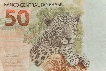 jaguar (panthera onca) on 50 Real banknote from brazil