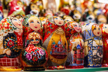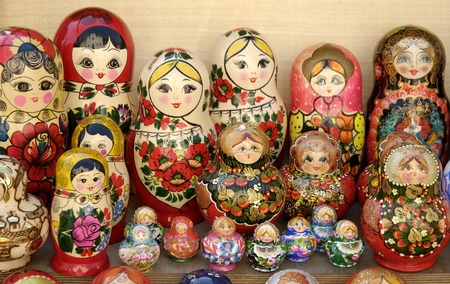 Russian traditions. Russian folk art and craft. Souvenirs and toys. Matryoshka dolls.