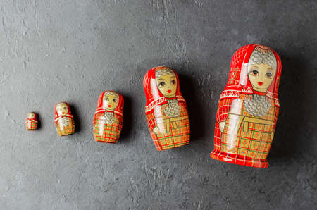 Russian nesting dolls on a wooden background. Traditional Russian souvenir.