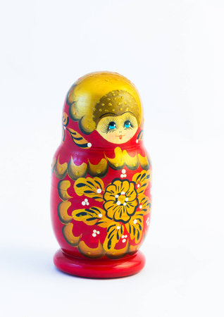 Traditional wooden doll Matreshka (Babushka) isolated on a white background