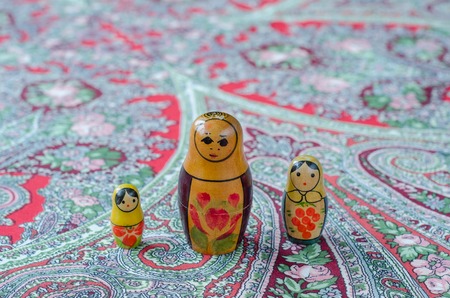 Russian nesting dolls on the traditional handkerchief. Vintage