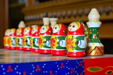 Chess figure nesting doll. Matryoshka. Russian wooden toy.