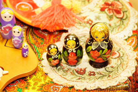 Russian traditions. Russian folk art and craft. Souvenirs and toys. Matryoshka dolls.