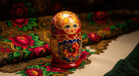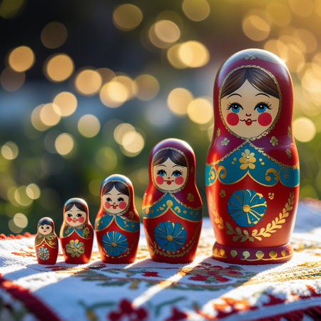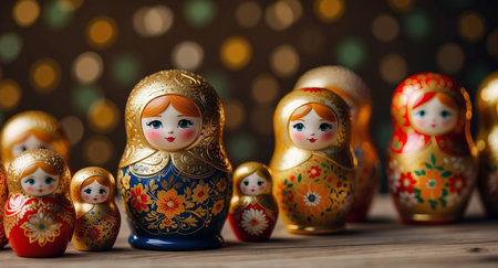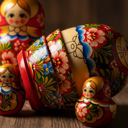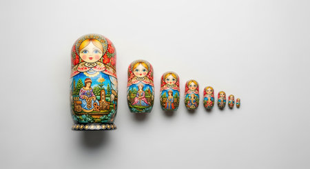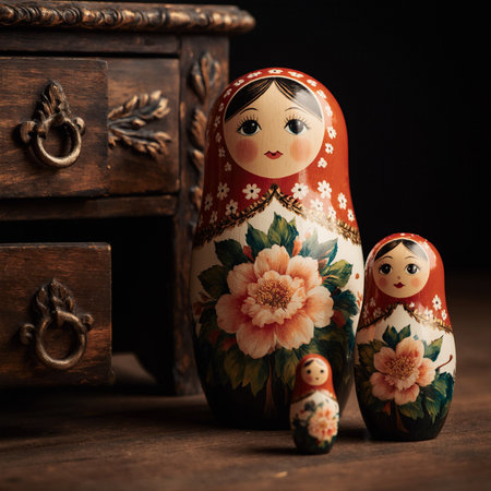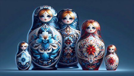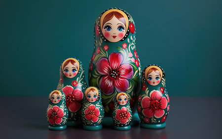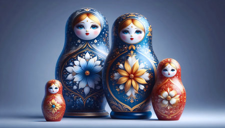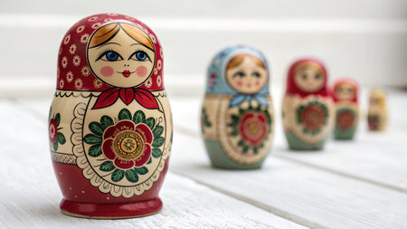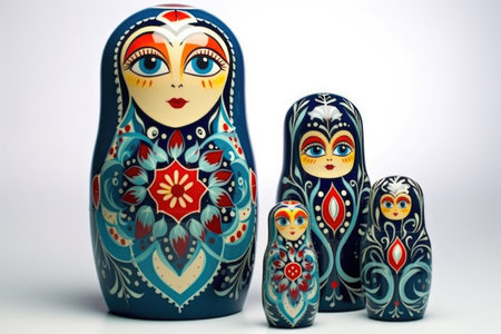 hand-painted nesting dolls with traditional russian motifs, created with generative ai
