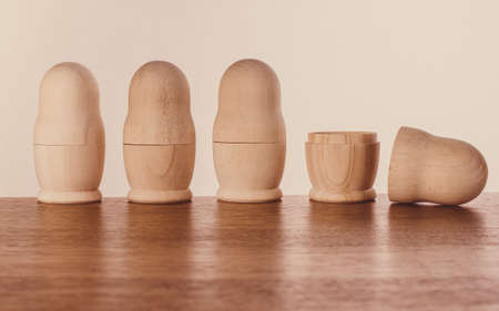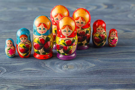 Russian nesting dolls on a wooden background. Traditional Russian souvenir.