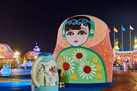 Manzhouli , China - July 19, 2018: All sorts of modelling Russian nesting dolls placed in matryoshka doll square of Manzhouli city. It is for people to visit.