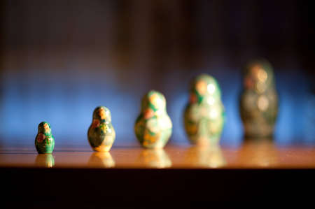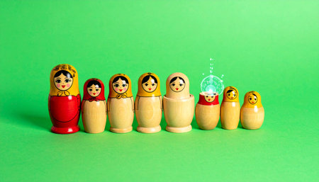 A line of traditional Matryoshka dolls stands in ascending order, leading to a surprising final piece.
