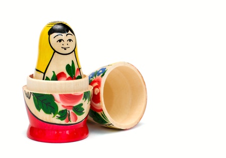Traditional wooden doll Matreshka (Babushka) isolated on a white background