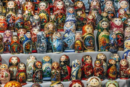 Display of colorful Russian nesting dolls, St. Petersburg, Russia