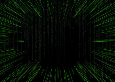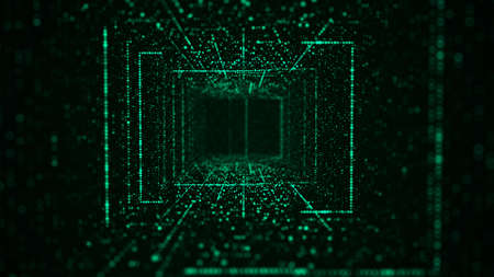 Digital binary code tunnel on green background. Abstract 3d illustration.