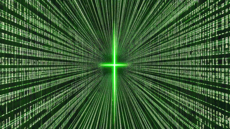 A stunning abstract matrix depicting a green light piercing through a data stream, creating a futuristic and digital atmosphere ideal for tech-themed projects.