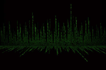 Technology binary code. Random falling green digits on screen. Hacked software. Matrix sciense background. Big data analytics. 3D rendering.