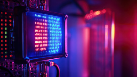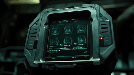 Close-up view of a modern digital control panel showcasing various data readouts and interactive icons, perfect for futuristic technology applications and design concepts.