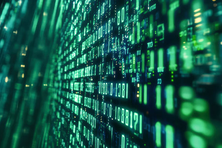 Futuristic Digital Matrix with Binary Code Patterns. Generative AI.