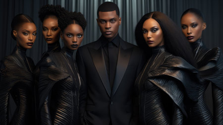 elegance black fashion models illustration beauty representation, style grace, runway couture elegance black fashion models