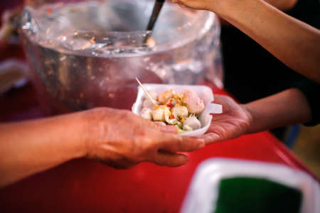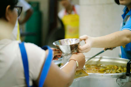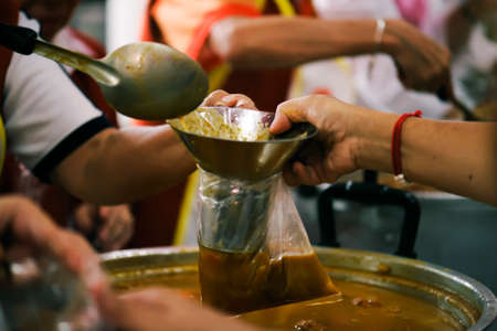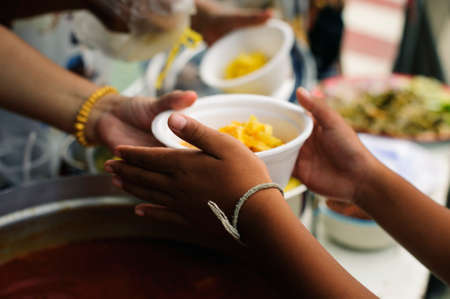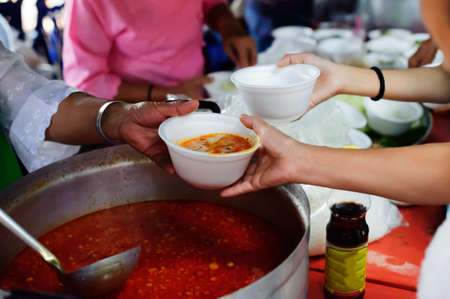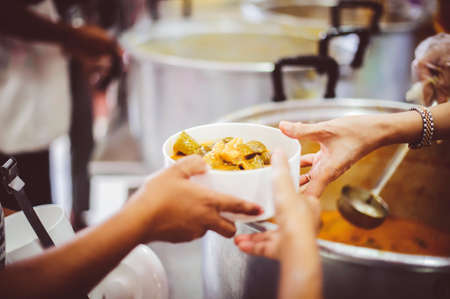 The hands of poor have been aided by charity food to alleviate hunger: The concept of social sharing