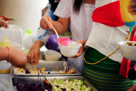 Concept of feeding and sharing : Providing free food for the poor hunger