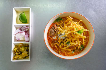 Curried Noodle Soup (Khao Soi) - Traditional Thai Food Northern Thai cuisine.
