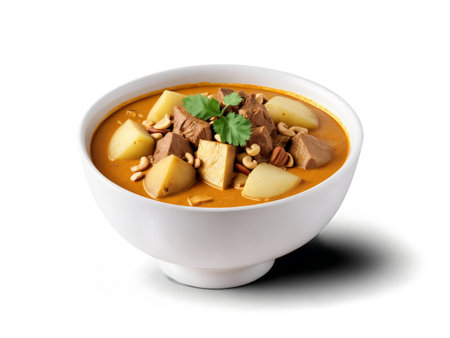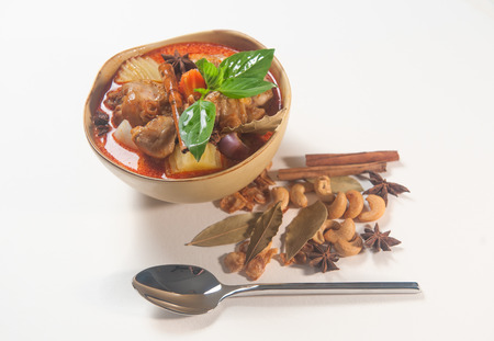 Massaman Curry rich coconut milk based curry with tender beef or chicken potatoes peanuts