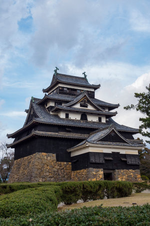 Inuyama castle historic building landmark in spring with beautiful cherry blossom.