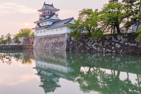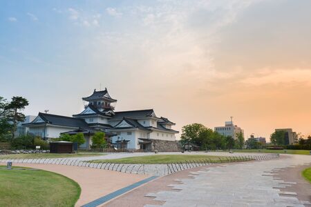 Toyama castle historic landmark in toyama city japan with beautiful sunset.