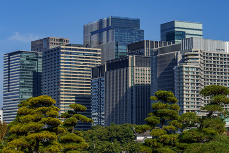 blue sky and skyscrapers. Shooting Location: Chiyoda Ward, Tokyo