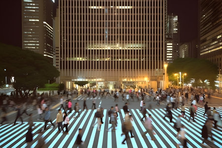 Vibrant street scene showcasing a bustling crowd of people walking through Tokyo s lively streets.