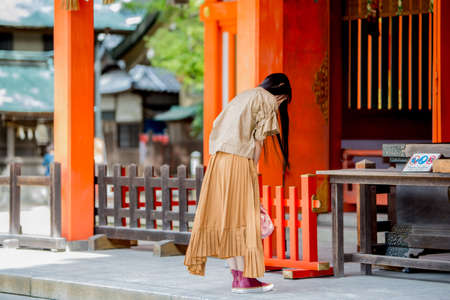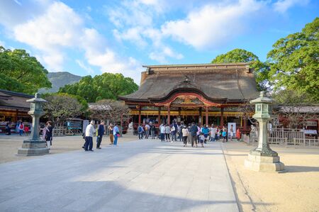 Fukuoka, JAPAN - 15 October 2019 : Tourists coming to pay respect at Dazaifu Tenmangu Shrine, one of the most well-known Shinto shrines in Japan.