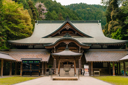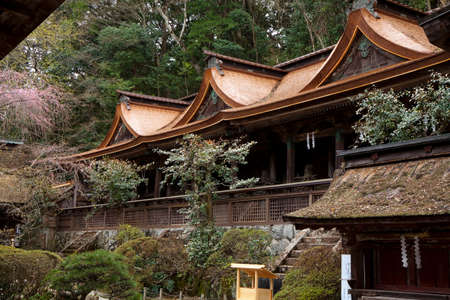 Kochi, Japan - April 6, 2018: On the grounds of historic Tosa shrine, designated as Important Cultural Property in Japan
