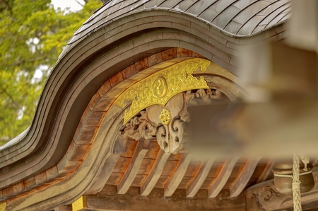 Roof of beautiful shrine in fukuoka city with nice sky background