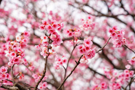 Wonderful spring cherry blossoms, pink flowers of cherry tree,Thailand