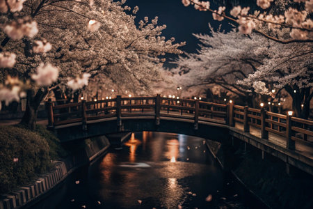 Night Cherry Blossom Bridge over Canal