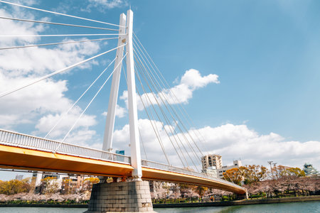 O river and Osaka Tenma Kawasaki Bridge at spring in Osaka, Japan