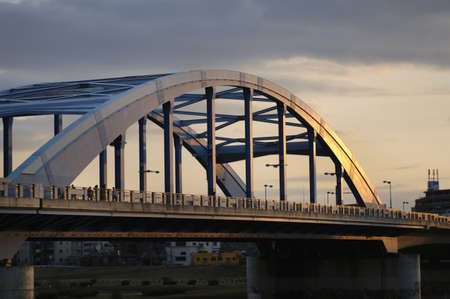 GUNMA, JAPAN - NOVEMBER 04, 2019: Beautiful old steel bridge in Maebashi. Maebashi is a city in the Kanto region of central Japan.