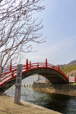 Red Drum Bridge at Sanzu River, Osorezan, Aomori