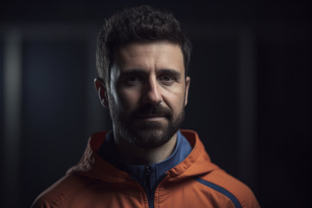 Portrait of a man with a beard and mustache in an orange jacket