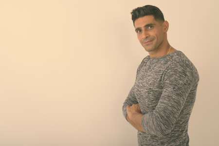 Young muscular Persian man against white background