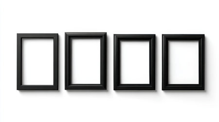 A set of black frames sits empty against a white background, intended for displaying pictures or memories in different locations.